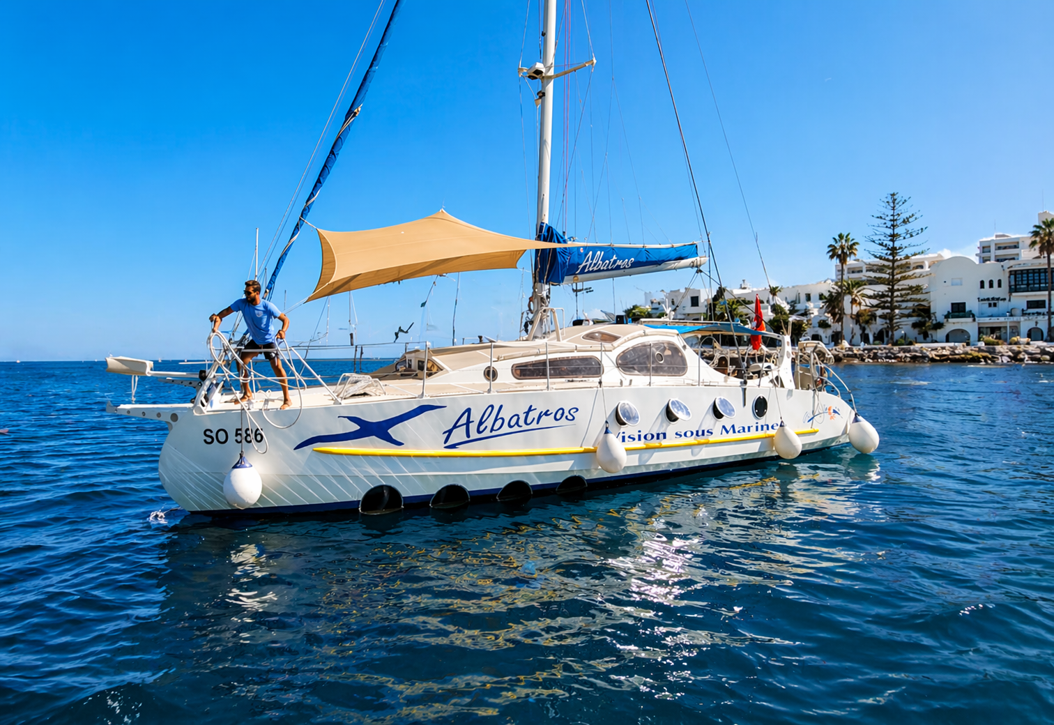 Vivez une balade privée inoubliable au départ de Sousse à bord du Albatros Catamaran, entre mer turquoise, détente et moments d’exception.