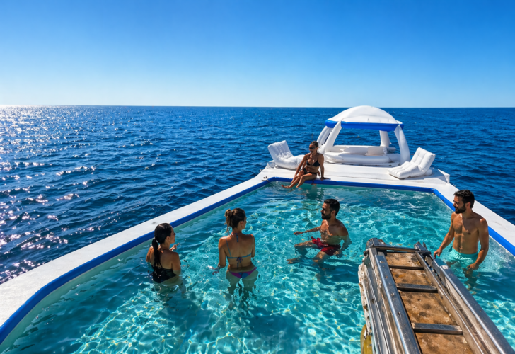 - Baignades et moments de détente avec plateforme et piscine flottantes