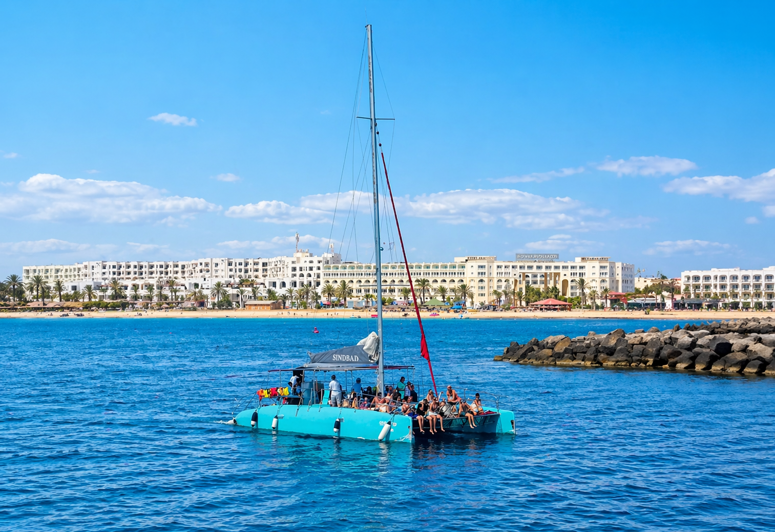 Partez au départ de Yasmine Hammamet à bord du Sindbad, un catamaran conçu pour une escapade en mer alliant confort, découverte et sérénité.